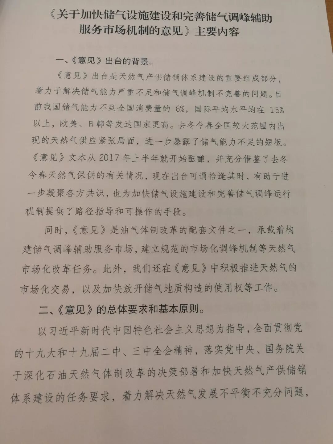 4月27日,国家发改委就天然气产供储销体系建设有关情况举行发布会,国家能源局相关司局负责同志出席,介绍“天然气产供储销体系建设”有关工作情况并回答记者提问。国家发改委政策研究室主任兼委新闻发言人严鹏程主持发布会。 严鹏程说,去年冬季,我国北方部分地区一度出现天然气供应紧张的局面,暴露出我们在天然气生产、供应、储备、销售等环节还存在一些不足。国家发改委、国家能源局坚决贯彻落实党中央、国务院关于做好天然气产供储销体系建设的相关决策部署,会同有关部门和企业建立了专门的工作机制,协调推进解决相关突出问题,推动天然气安全稳定供应工作,取得了积极进展。 第一个方面 关于推进天然气产供储销体系建设重点工作进展。近几个月来,我们会同各地方、相关部门以及企业,在深入研判天然气供需形势的基础上,围绕增产增供、重点管网联通、储气设施建设、用户调峰管理等工作,进行了密切的沟通合作,务实推进了一系列工作举措。 一是扩气源。重点是加大国内气田勘探开发力度。我们协调推动相关资源地区积极为企业勘探开发、新建产能创造条件,支持企业加大勘探开发投资量和工作量,加快推进煤层气、页岩气、致密气等非常规天然气产能建设。 二是抓项目。重点是加快开工建设了一批储调项目,推进了一批管网联通。曹妃甸LNG接收站储罐扩建、天津大港LNG调峰应急站、文23和长春地下储气库等一批具备条件的储气设施项目已经开工建设; 中石油陕京四线增压增输改造、中石化广西LNG接收站与中缅管道联通、中海油广东区域内LNG接收站与西二线联通等重点互联互通工程建设顺利推进。 三是建机制。重点是探索创新用户调峰机制。我们立足有效解决峰谷用气问题,协调推动各地基本落实了1亿立方米的用户清单,指导一些地方探索形成了“气电联调”、动态调整可中断大工业用户用气量、发展可替代能源用户等增量用户调峰能力的有效做法。 四是压责任。重点是落实相关地方、企业在保障天然气安全稳定供应和民生用气需要等方面的责任。国家发改委、国家能源局每年都与相关地方和企业签订民生用气保障责任书,以往这项工作我们都是在下半年开展。 今年,我们立足于早谋划早动手,目前已基本完成这项工作。 我们先后与21个省区市签订了《民生用气保障责任书》,与8个省区市签订了工作层面备忘录,与主要供气企业签订了保障天然气供应责任书。一些省区市还结合实际,制定了本地区民生用气保障责任书和实施方案。 第二个方面 出台《关于加快储气设施建设和完善储气调峰辅助服务市场机制的意见》。为着力解决我国天然气发展不平衡、不充分问题,加快补足储气能力短板,明确政府、供气企业、城镇燃气企业等相关各方的储气调峰责任与义务,国家发改委、国家能源局联合印发了《关于加快储气设施建设和完善储气调峰辅助服务市场机制的意见》。 《意见》主要包括两方面内容。一是加快储气设施建设。我们设定了具体明确的储气指标要求,主要是3个数字,即“供气企业10%、城燃企业5%、地方政府3天”。 具体来讲,就是到2020年,供气企业要拥有不低于其合同年销售量10%的储气能力;城镇燃气企业要形成不低于其年用气量5%的储气能力;县级以上地方人民政府至少形成不低于保障本行政区域日均3天需求量的储气能力。 需要强调的是,以上各方的储气指标不得重复计算,而且作为动态发展指标,在2020年以后开展年度指标考核时,以当年实际合同量或用气量进行核定。 二是构建辅助服务市场。支持各方通过自建合建储气设施、购买租赁储气设施,或者购买储气服务等方式,履行储气责任。 同时,坚持储气服务和调峰气量市场化定价,合理疏导储气调峰成本,坚持加强市场监管和考核问责,为构建辅助服务市场打好基础。 此外,这个文件还提出了五个方面的重点任务和五个方面的保障措施。
